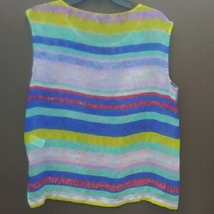 Daisy Fuentes flowered multicolor sheer top sleveeless.