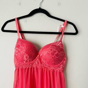 Daisy Fuentes pink push up lacy sheer mini night gown woman’s M