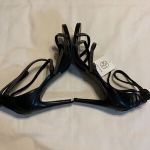Daisy Fuentes strapping stiletto heels with zip up back closure