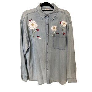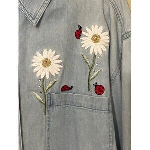 Daisy & Ladybug Embroidered Button-Down Shirt XL Novelty Cottagecore