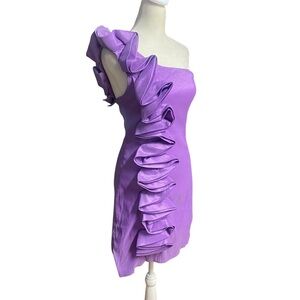 Daisy One-Shoulder Ruffle Dress Size S Lavender Dance Cocktail Bodycon Stretch