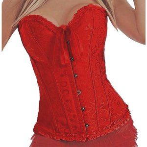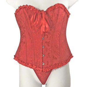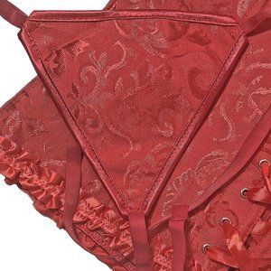 Daisy Overbust Corset Women's Size XL Red Strapless Luxe Brocade Top and Thong Set