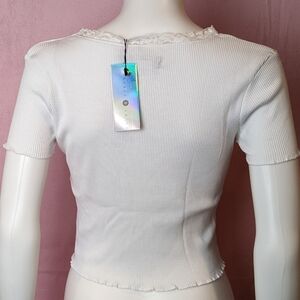 Daisy Street Dolls Kill White Butterfly Embroidery Short Sleeve Crop Top Medium