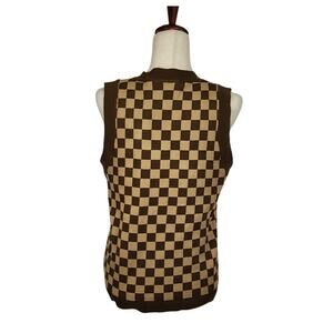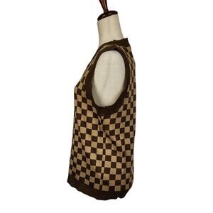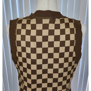 Daisy Street Knit Sweater Vest Check Brown Tan Women's US Size Medium New