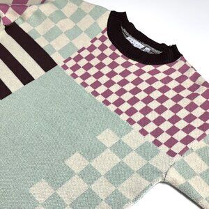Daisy Street white/black/blue/purple checkered stripe knit oversized sweater/jumper dress.