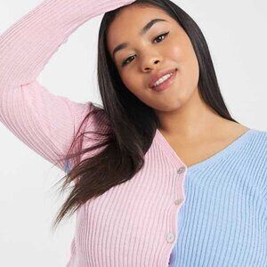 Daisy Street Plus Contrast 90's Fitted Cardigan – Pink & Blue, US 14