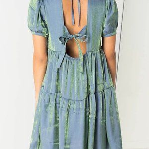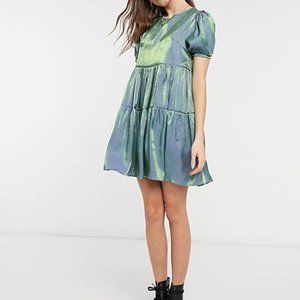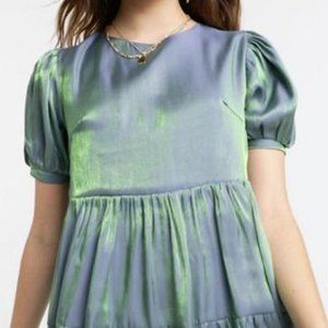 Daisy Street relaxed mini smock dress with puff sleeves in iridescent