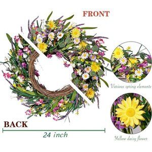 🧿VERSATILE DECOR:This colorful floral wreath is suitable for front door, wall, indoors,outdoors,window,fireplace,farmhouse, living room, porch, centerpiece party, wedding, holiday and festival celebration. It will provide your home a feeling of natural and vatality.