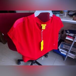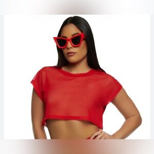 Daisy crop top mesh or net fabric crew neck red Mesh Net Crop Top size M