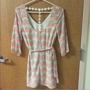 Flowy adorable short dress. Unique daisy back! Wore it for my graduation and don't need it anymore. Like new and fits fantastic! No tears or stains. Smoke free home!