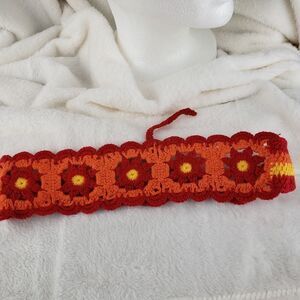 Red, orange and yellow floral crocheted headband