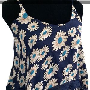 This lined summer dress has crochet trim and is 100% Chiffon-like polyester. It also has adjustable spaghetti straps! Size M . 24.5” Length, 16” Bust. New with tags.
