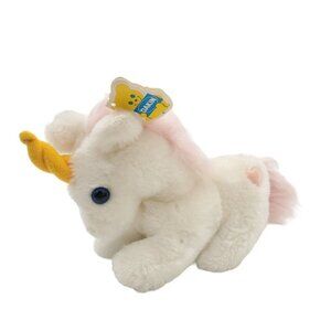 This vintage Dakin stuffed animal is a must-have for any collector or fan of unicorns. With its small size of 6 inches, it's perfect for cuddling or displaying. The plush is made with high-quality materials and features a heartwarming white and pink color scheme.