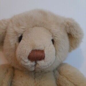 Dakin, Applause tan teddy bear plush stuffed animal. Susan Bear 2nd Edition, Breast Cancer Awareness. Has pink ribbon on foot. Missing neck bow. Has plastic pellet beans in hands and feet. There is a name written on the tush tag. Approx. 14"