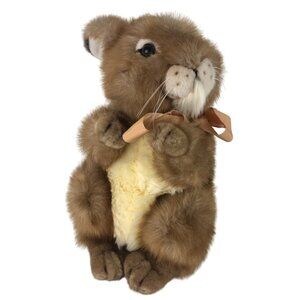 Vintage Dakin Brown Real Bunny Sitting Easter Rabbit Plush Stuffed Animal Bow 12"