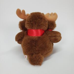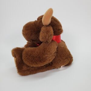 Dakin Moose 7" Plush Stuffed Animal Brown Red Bow Sitting 1993. Listing is for 1 plush in good condition with minor wear from being used and stored. Please review photos carefully as an extension of the description as this will be the item you receive. Dimensions: Height 7", Width 6", Length 7"