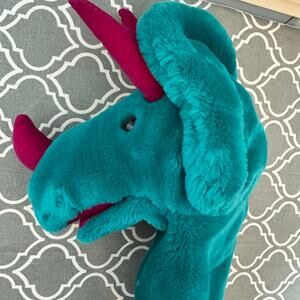 Dakin Vintage Dinosaur Puppet 1991 Plush Toy Green 12" Triceratops Hornsly