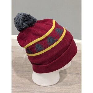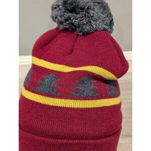 Dakine Beanie Winter Hat Pom Knit Wool Blend Maroon Striped Trees Winter Unisex