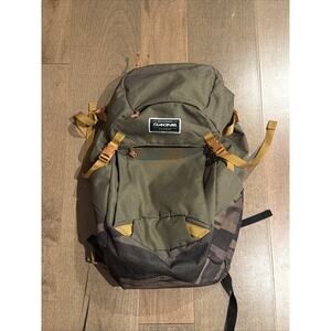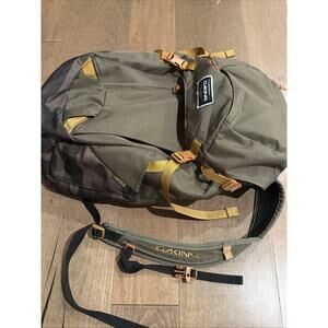 Used Dakine Canyon backpack in Field Camo, 28-liter capacity. Designed for day hikes, travel, and everyday carry. Features padded laptop sleeve, internal organization, breathable back panel, and adjustable shoulder straps. Exterior shows light wear from normal use—no tears or major damage. All zippers, buckles, and stitching intact. Includes backpack only.