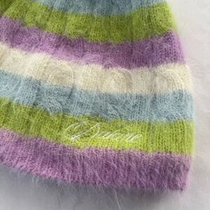 Dakine Colorful Stripe Fuzzy Cableknit Angora Nylon Beanie Rainbow Fall Winter