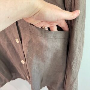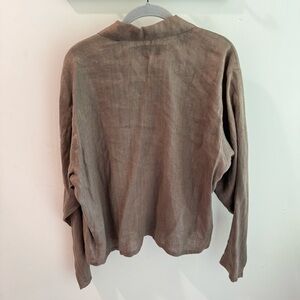 Dakini 100% Linen Boxy Button Front Top in Taupe XL