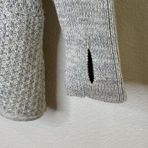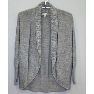 Dakini Open Front Sweater Cardigan Women's Size Large Gray Cotton Blend Collared Long Sleeve w/ Thumb Holes Round Hem