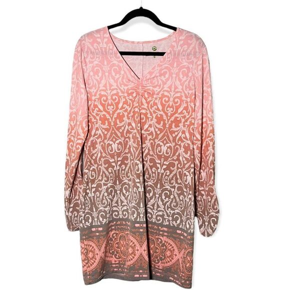 Dakini Taupe and Peach Ikat Print Long Sleeved Dress Size Large