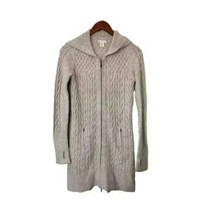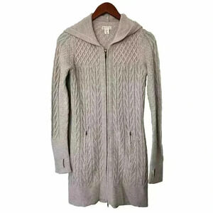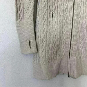 Dakini Womens Zip Up Sweater size XS Chunky Knit Tan Neutral Nylon Wool