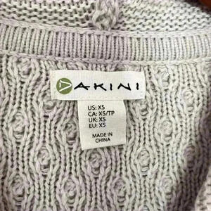 Elevate your wardrobe with this stylish and cozy Dakini sweater in a neutral beige color. The chunky-knit pattern and nylon fabric type create a bohemian and beachy vibe, while the long sleeves provide a classic and flattering fit. This zip up sweater is made of a wool blend and nylon material and is machine washable for easy care. Perfect for any occasion, this size XS sweater from a respected brand is a must-have for any woman's clothing collection.