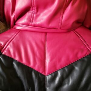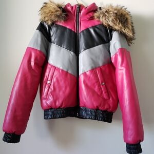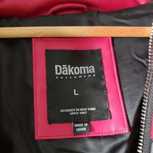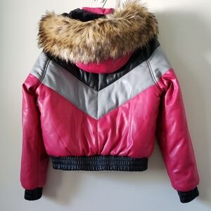 Dakoma Vegan Leather V Bomber Jacket Faux Faur Hood Size Large
