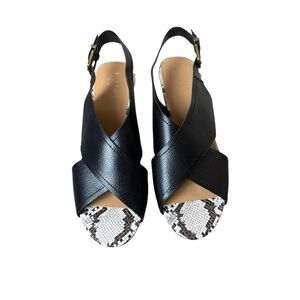 Dakota Chase Sandals Womens 11M Nineth Cross Strap Cork Wedge Snakeskin Black