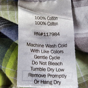 Pictured is blue & green plaid Madras Shirt by Dakota Grizzly.