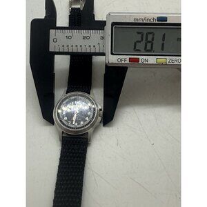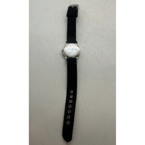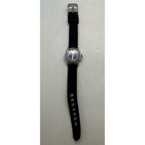 Dakota Round Stainless Steel Watch Canvas Black Band Mineral Glass Crystal 3 ATM