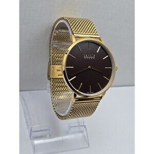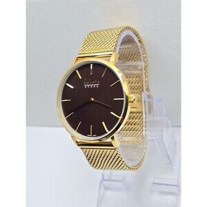 Dakota Steel Gold Mesh Quartz Analog Watch Brown Dial Dressy New Battery Unisex