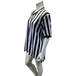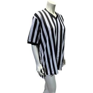 This classic Dalco Athletics referee shirt is perfect for any sports officiating role. Featuring bold black and white vertical stripes, this performance jersey has a classic look that's ideal for basketball, soccer, football, or any other sport where referees and officials are needed.