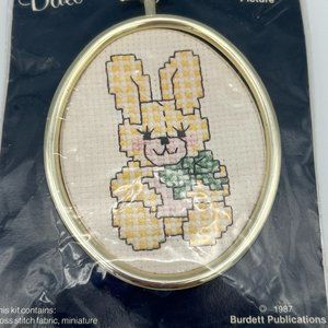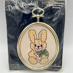 Dale Bundett Cross Stitch Kit CM 863 Gingham Bunny w/ Green Ribbon VTG 80s