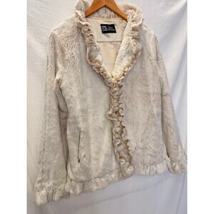 Dale Dressin Ruffle Open Front Faux Fur Coat Cream Small Statement Old Hollywood