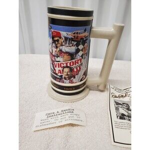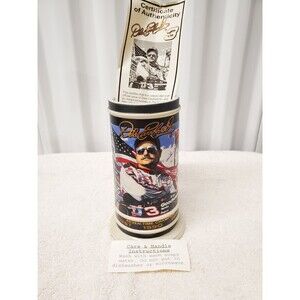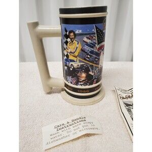The product is a 2001 Dale Earnhardt beer stein with an authentic certification number (#01344). This collectible item is a must-have for fans of NASCAR and auto racing, specifically those who admire the legendary driver Dale Earnhardt. The beer stein is a unique and special souvenir that commemorates Earnhardt's career in the sport, making it a valuable addition to any fan's collection. Do not have original box.