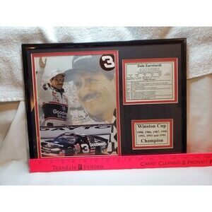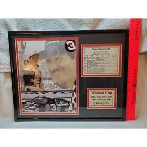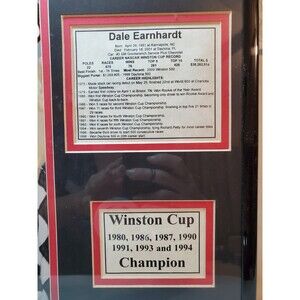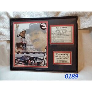 The product is a framed photo featuring Dale Earnhardt, a legendary figure in NASCAR auto racing. As a 7-time Winston Cup Champion, Earnhardt's career record is significant and highly respected in the racing community. The photo captures a moment in racing history and is a must-have collectible for fans of Dale Earnhardt and the sport of NASCAR. This unique item serves as a tribute to Earnhardt's impressive achievements and legacy within the world of auto racing.