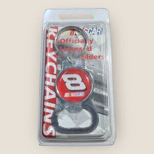 This NASCAR keychain combines a bottle opener design, offering practicality for fans of Dale Earnhardt Jr.