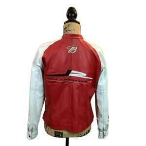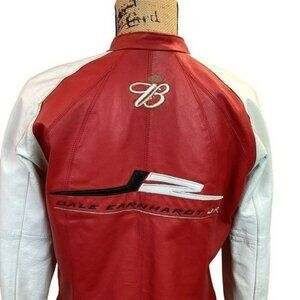 NASCAR jacket, Wilsons Leather, Dale Earnhardt Jr, women's jacket, leather jacket, red white jacket, medium jacket, racing apparel, authentic NASCAR, trackside apparel, women's fashion, leather outerwear, motorsport fashion