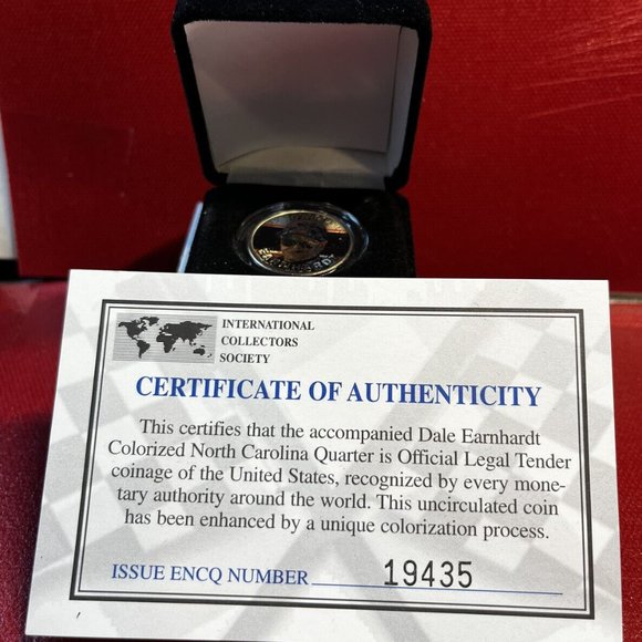 You are buying a new jewelry boxed with coa - Dale Earnhardt Sr Colorized 2001 North Carolina First Flight State Quarter. It is encapsulated and boxed and looks pretty nice. I have three total. This auction is for one.