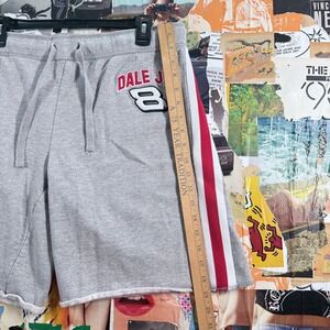 Keywords: Dale Jr shorts, NASCAR shorts, Chase Authentics, Mens shorts, Gray shorts, Racing shorts, Embroidered shorts, Sporty shorts, Medium shorts, Athletic shorts, Casual shorts, Drawstring shorts, Raw hem shorts, Motorsport apparel, Collectible shorts