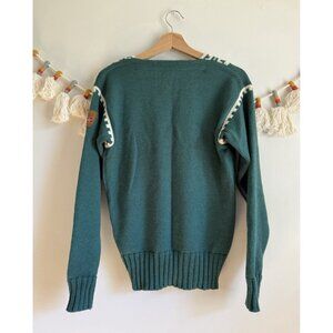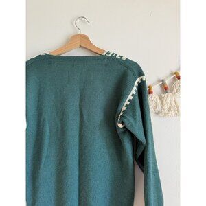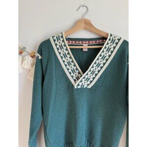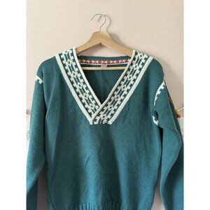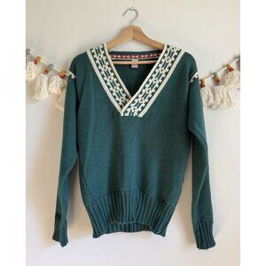 Dale Of Norway Alpina 100% Merino Wool Green V-neck Sweater Nordic Preppy S