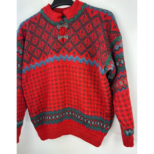 Dale Of Norway Pure Wool Lined Heavyweight Sweater Red Nordic Print Clasp Large