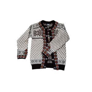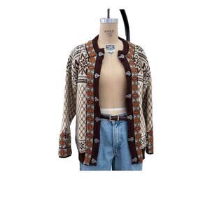 Dale Of Norway Wool Sweater Woven Cardigan Autumn Fair isle Pewter Clasp Size 42