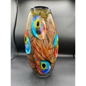 Dale Tiffany Large Art Glass Vase. Beautiful striking color scheme!! Preowned but in like new condition!! No chips or cracks!! Striking decorative accent for any room!! Amazing value for a high quality piece!!