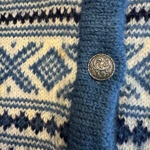 Dale of Norway Fair Isle Blue and Ivory Button-up 100% New Wool Cardigan Size 44