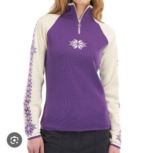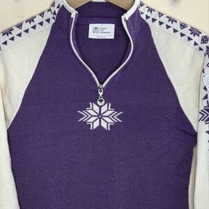 Dale of Norway Geilo Quarter Zip Snowflake Purple Cream Wool Sweater Size Small