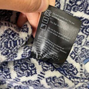 Stay warm in timeless Scandinavian style with this Dale of Norway Ingeborg women's jacket in size XS. Made from 100% premium merino wool, this long sleeve zip-up sweater features a traditional Nordic Fair Isle pattern in blue and white. With a mid-thigh length, it's perfect for layering on chilly days, whether you're heading to the mountains or enjoying cozy winter moments. In excellent used condition—see photos for full details.